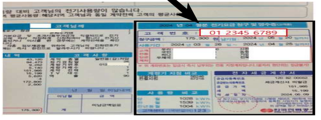 - 고객번호를 모르는 경우 한전 홈페이지 또는 한전 고객센터 국번없이 123 로 문의 하시면 됩니다.