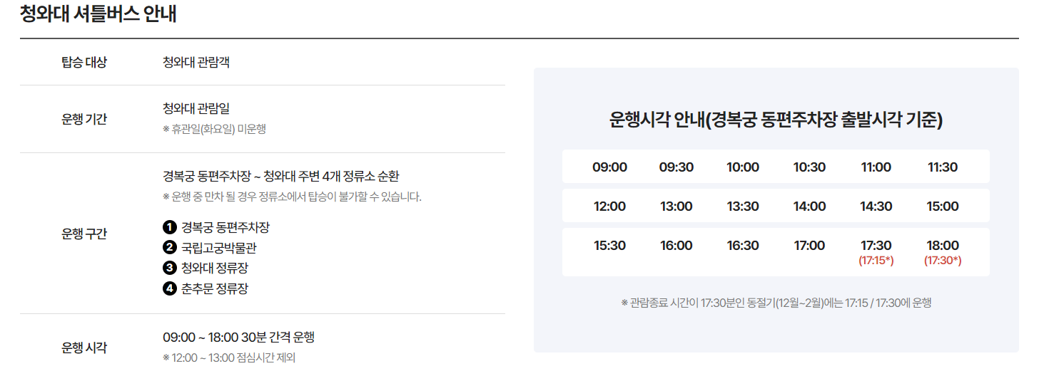 ✅[12월~2월] 오전 09:00~17:30 / 청와대 입장 및 입장마감시간 17시 00분