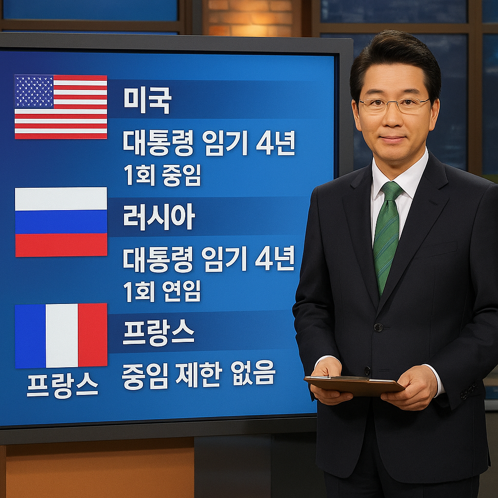 미국, 프랑스, 브라질 등 대통령제를 운영하는 대부분의 국가는 4년 중임제나 연임제를 도입하고 있습니다. 전 세계 대통령제 국가의 약 87%가 이처럼 연속 혹은 반복적인 임기를 허용하고 있습니다.